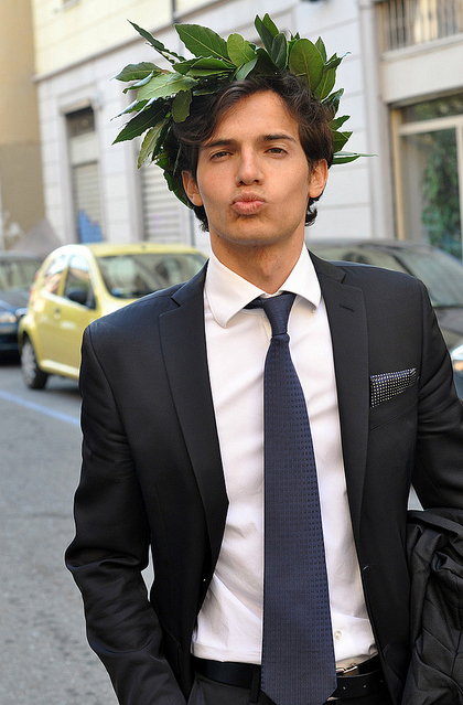 Pues nada, después de un larguísimo post que espero que os haya servido para entender lo que significa lo de dormirse en los laureles, os dejo con una aplicación moderna de la corona de laurel que seguro que le alegra el día a más de una (Arantxa, te dedico la foto de este guapo italiano 😀 ).
